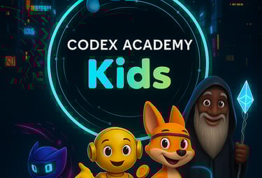 Genesis Codex Academy is a next generation learning platform that teaches blockchain, digital assets, and modern finance through immersive, story driven education. Designed for both adults and children, our curriculum makes the “new money” system understandable, ethical, and fun. Learners can choose from structured adult tiers: Initiate, Architect, and Guardian, or explore Codex Academy Kids, where characters like Blocky, Hashy, Vaulta, Flashy, and Genesis guide young minds through missions that teach trust, fairness, and digital safety. Whether at home, in schools, or inside forward thinking corporations, Codex Academy helps communities master the future of value, one block at a time.